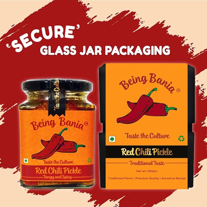 Being Bania Stuffed Red Chilli Pickle - 100% Natural | No preservatives | Bharwa mirch ka achar | 250g in Jar | Fresh Pickles | Lal Mirchi
