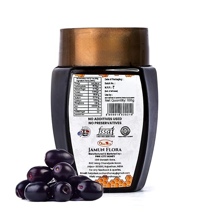 Orchard Honey Jamun Honey 100g | 100% Pure Honey| Natural Organic Honey| No Added Sugar or Preservatives| Nutritional Immunity Booster| Certified Wild Forest Honey in Fresh Original Shahad