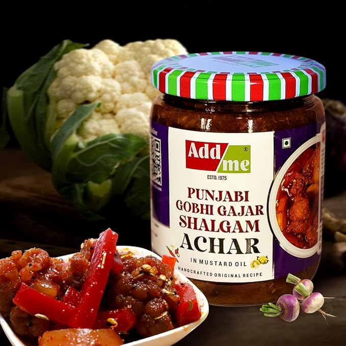 Add Me Gobhi gajar Shalgam Pickle 600g | Homemade Fresh Mixed Pickle of Cauliflower, Carrot & Turnip with Garlic and Onion | Mixed Pickles in Mustard Oil Vintage Recipe
