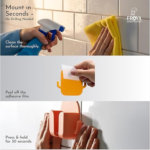 Mobile Holder for Home – Self-Adhesive Mobile Stand for Wall with Dual Hooks, Multipurpose Remote Holder Wall Mount for Phone, AC Remote & Earphones – Durable ABS Build, Pack of 4 (Random Color)