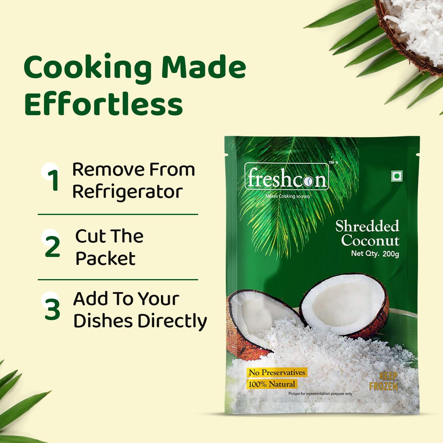 200gm Natural Freshly Grated Nariyal No Preservatives Instant Ready to Use for Cooking Baking Chutney Curries and Desserts