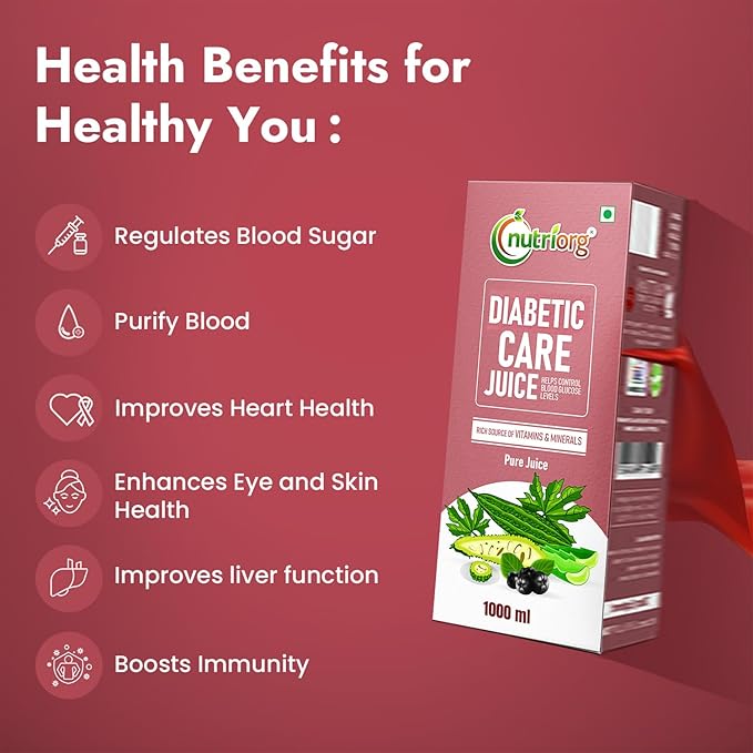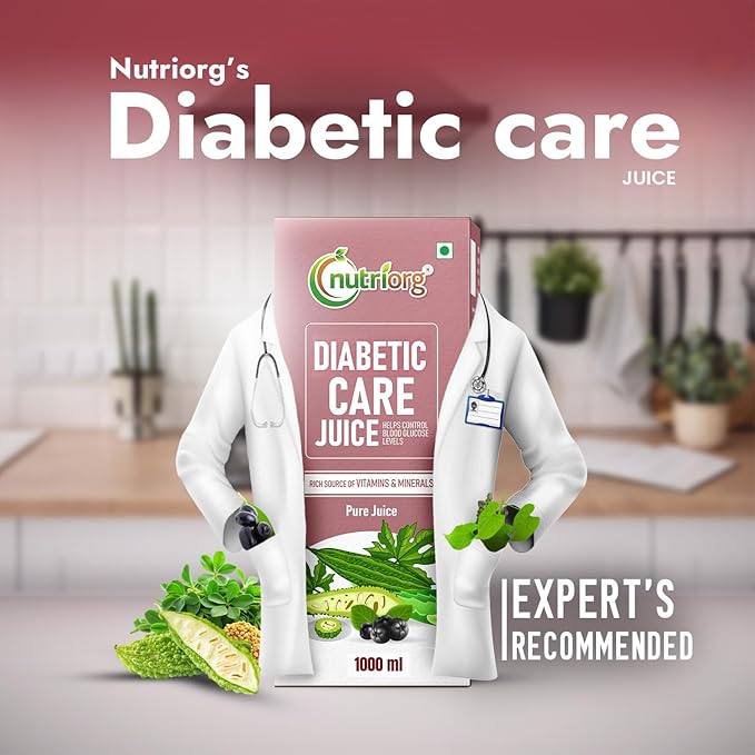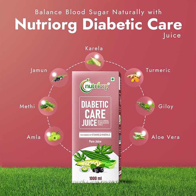 Nutriorg Diabetic Care Juice 1Ltr | Ayurvedic Blend for Blood Sugar Control | Made with Karela, Amla, Jamun, Methi, Aloe Vera, Giloy, Neem & Tulsi | Pure & Natural Juice for Diabetic Care