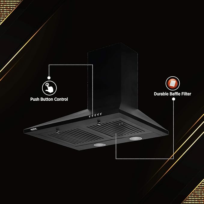 Black 6 kg 200 g Marvia 60 cm Chimney | 1000 CMH Pyramid Push Button Efficient Dual LED Lamps and Double Baffle Filter 5 Yrs Warranty on Motor
