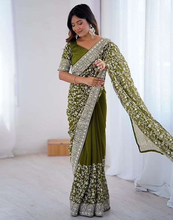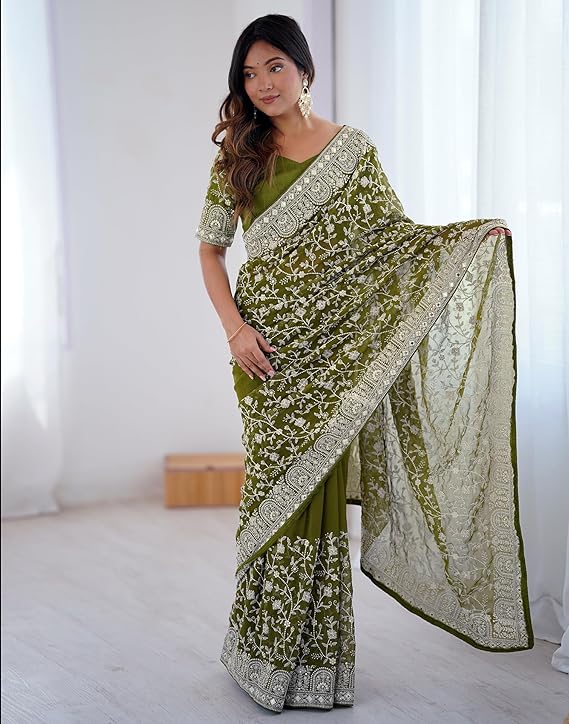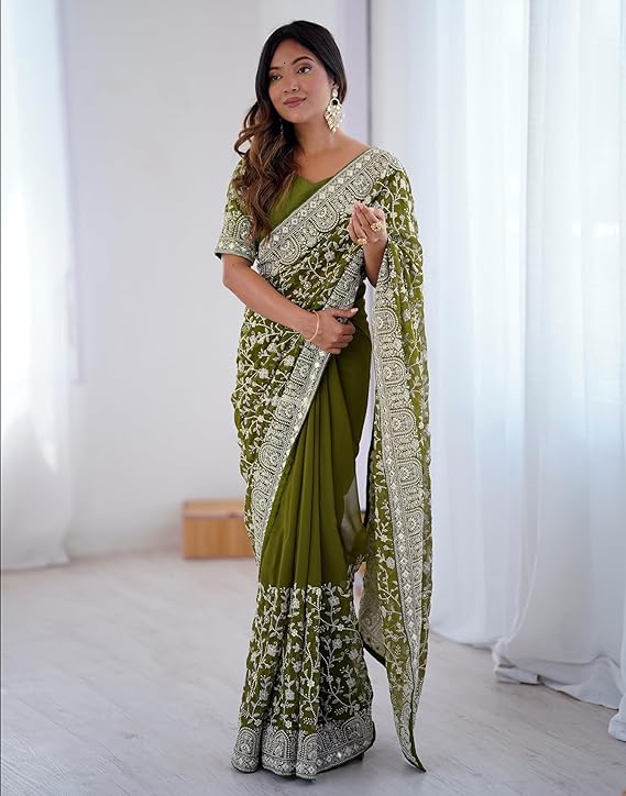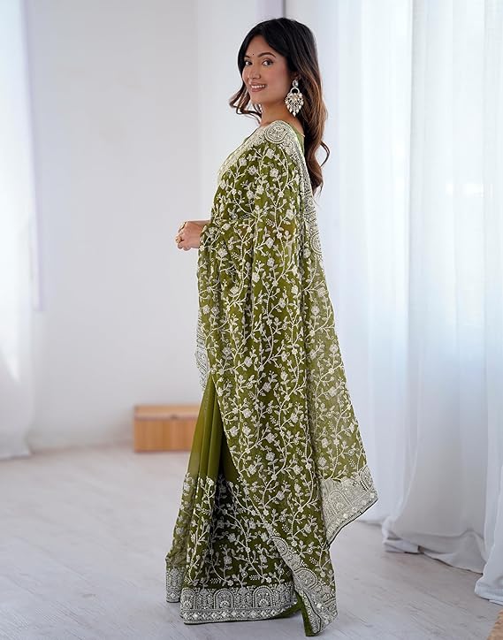 Georgette Chikankari Sequence Embroidery And Mirror Work Saree