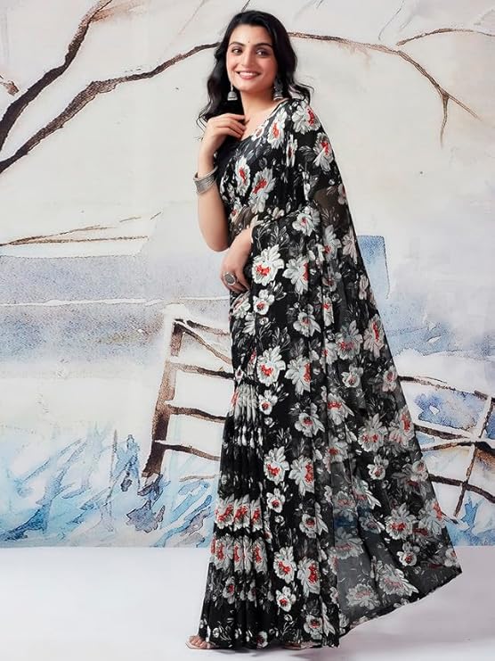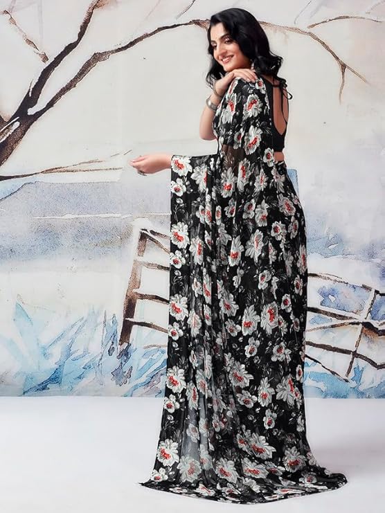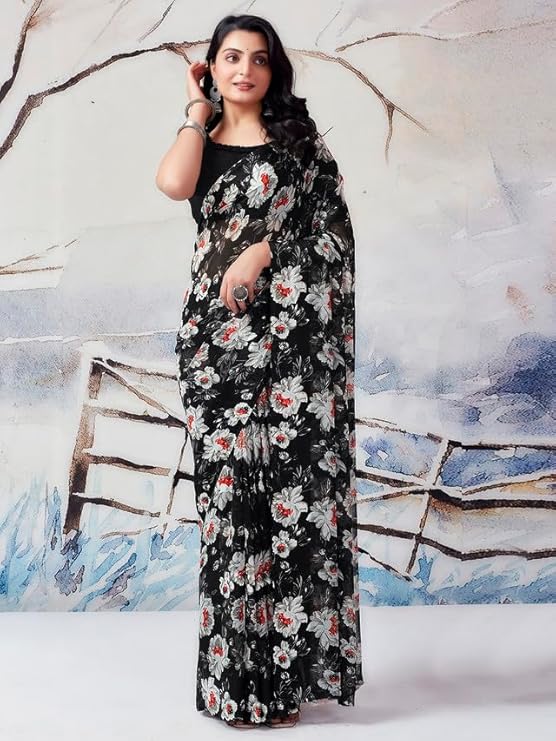 Georgette Printed Satin Patta Saree