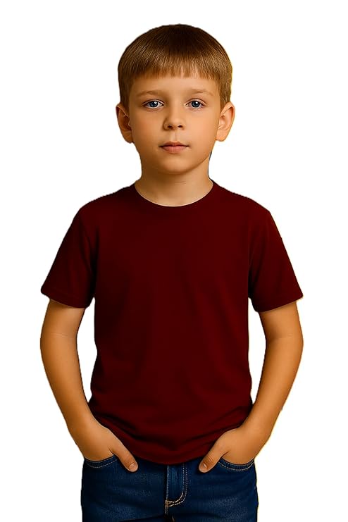 Kids Boys Round Neck Half Sleeve T-Shirt, Solid Plain, Cotton, Regular Fit, Casual Wear