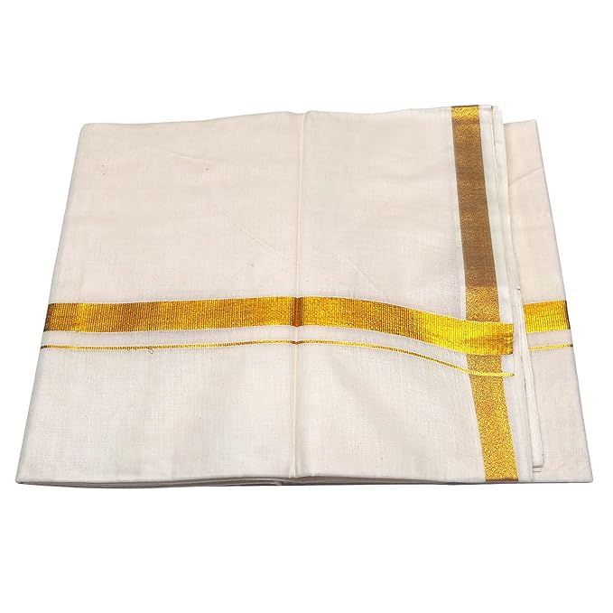 4.00 MTRS Hand Wash 60s Count Cotton Dhoti Tradional Wear Dhoti Gold Zari Dhoti