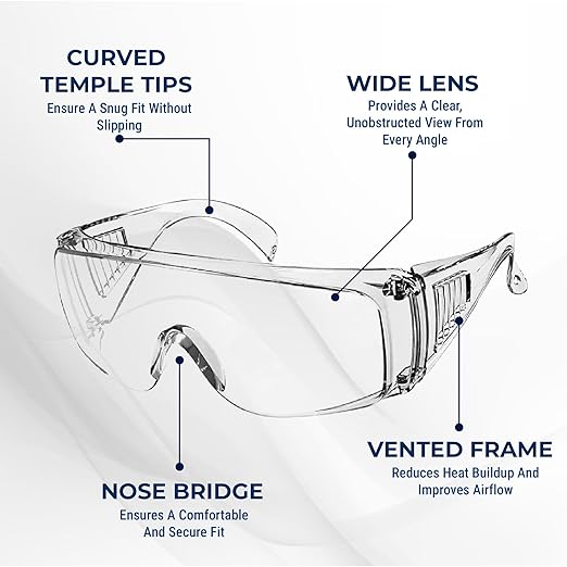 Robustt Safety Goggles - Pack of 1 Hard Coat Eyewear, Over The Spectalar Eye Protector, Anti Pollution Goggles For Multipurpose Use In Riding Motorcycle, Construction, Clear Transparent Goggles