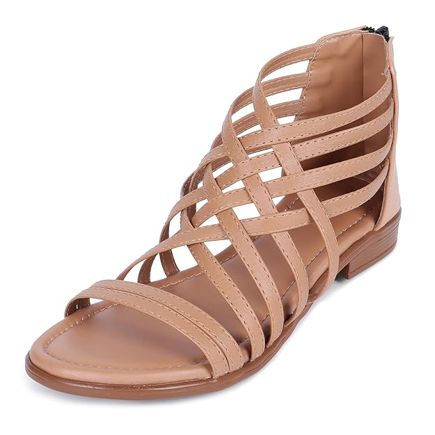 TRASE Gladiator Sandals With Zip Closure Flats For Woman And Girls - Women Sandals - Stylish And Trendy Strappy Design Flat Footwear For College, Office And Beach Wear