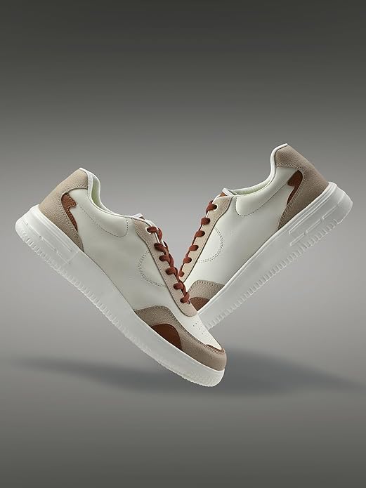 Liberty Leap7x AMAZER-3E Casual Lacing Sneakers for Men - White & Brown | Stylish Lace-Up Sneakers with Cushioned Insole & Anti-Skid EVA Sole | Comfortable, Flexible, Trendy Sports Shoes