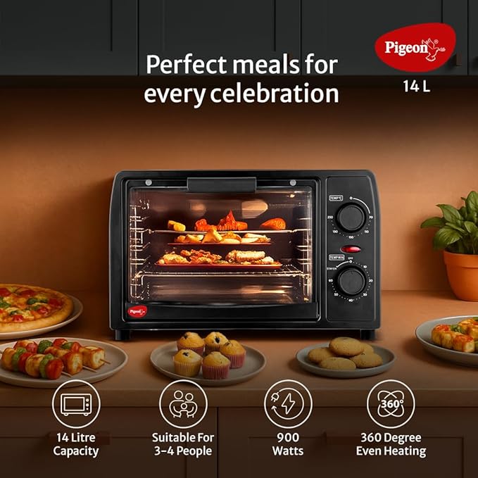 37D x 29.2W x 24H Centimeters 14 litres 900 Watts| Toast, Grill, Bake & Roast | Heat Resistant Tempered Glass| Black