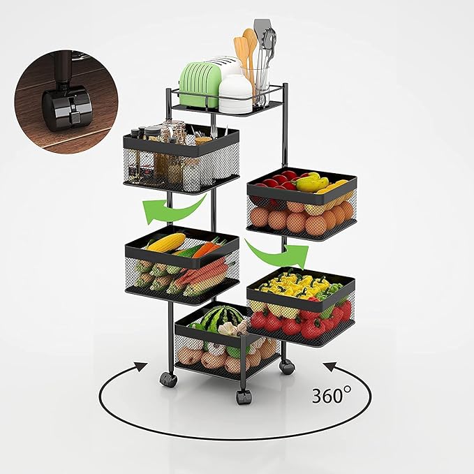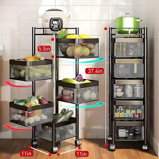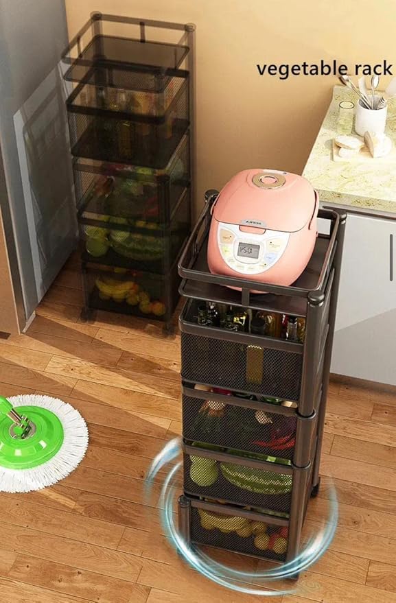 Multi-Purpose Trolley Storage Organizer and Kitchen Accessories Items for Kitchen Storage Rack Square Design Fruits & Vegetable Onion Cutler (5 Tier)